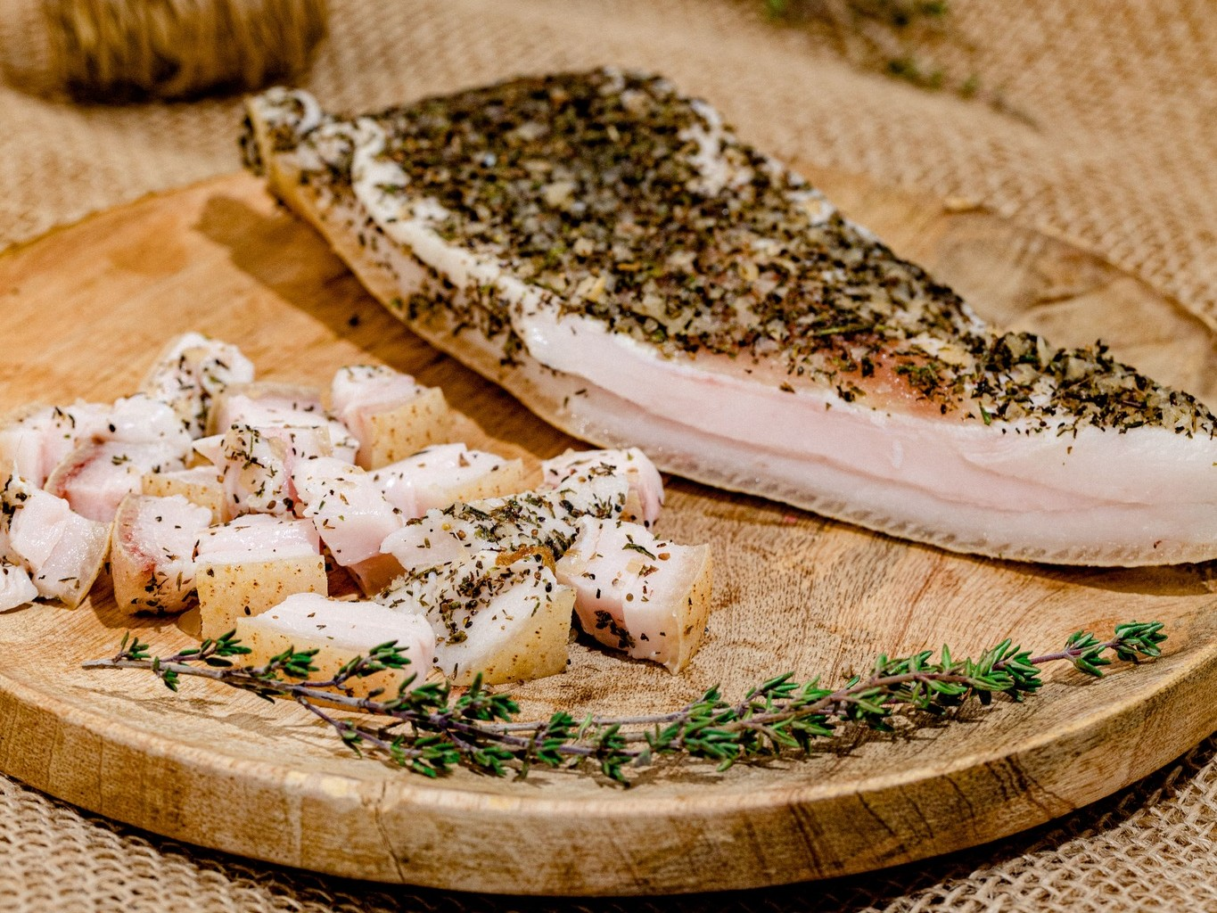 Ingrediente: cotlet de porc RO, sare cu nitrit, piper, usturoi, cimbru, ardei iute, dafin şi muştar boabe.