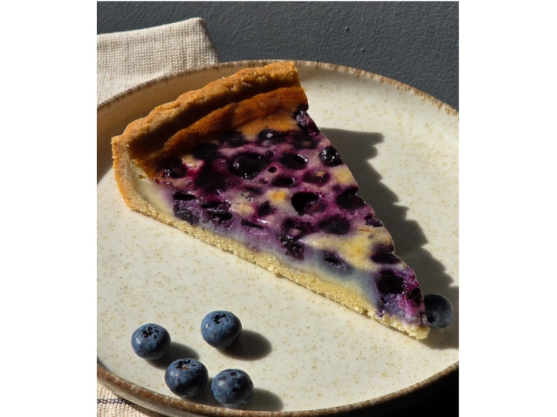 Tarta cu afine îmbină prospețimea afinelor cu o cremă fină și delicată, oferind un gust echilibrat între dulce și acrișor.