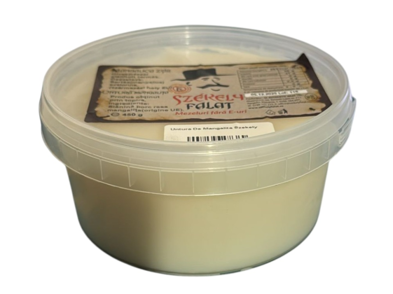 Ingrediente: slănină porc-rasă mangaliţă (origine UE). Produs obținut prin topirea slăninei.